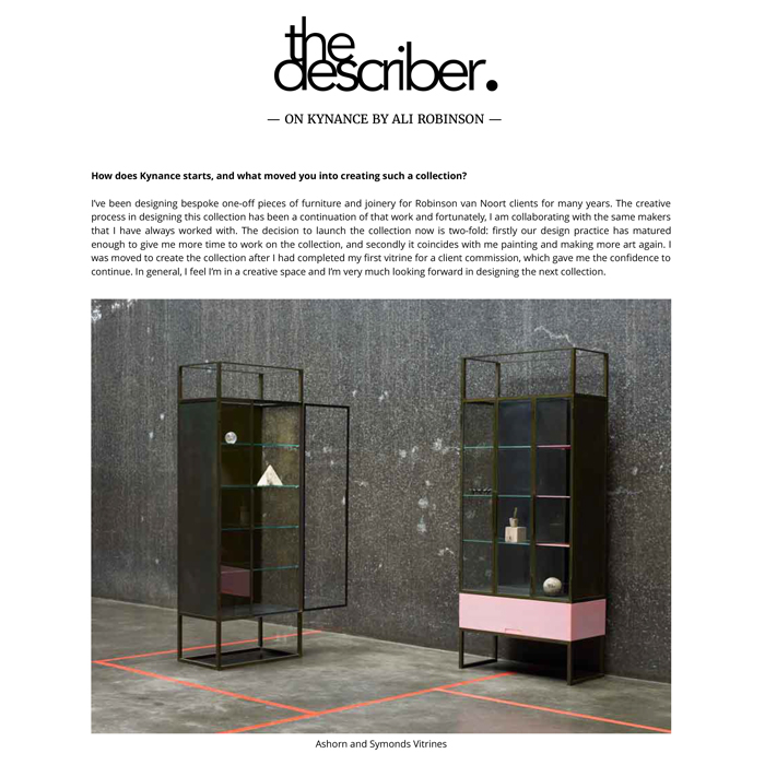 Designer Profile article on Ali Robinson in The Describer online magazine